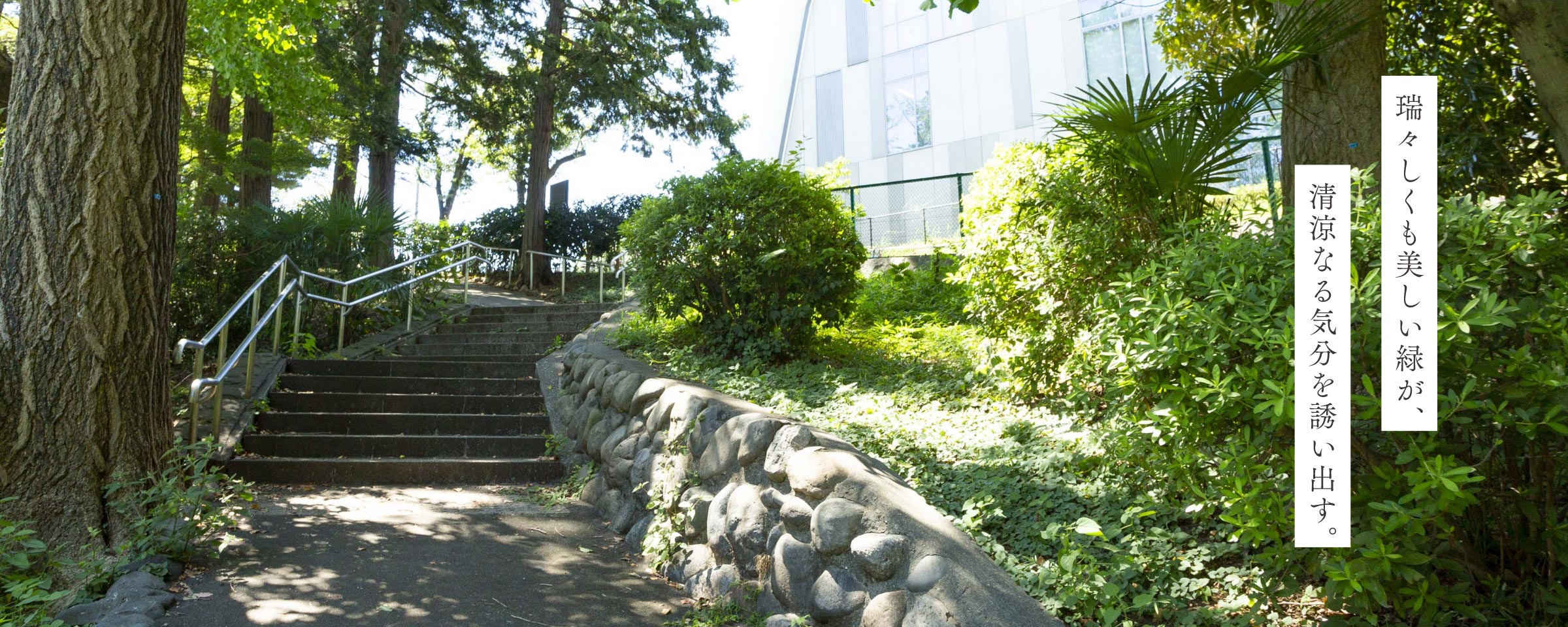 “ 緑にあふれ、散歩やピクニックも爽快に。”